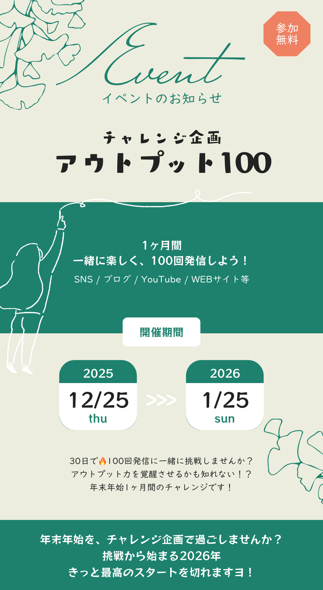 年末年始を挟む30日間で、100回アウトプット(発信)しよう!